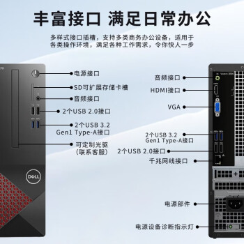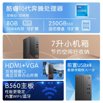 戴爾(DELL) 成(chéng)就3690 商用辦公台式電腦 全套整機家用主機3710升級外觀7L mini主機 主機+21.5英寸顯示器 英特爾G6405 8G 256G固态 定制